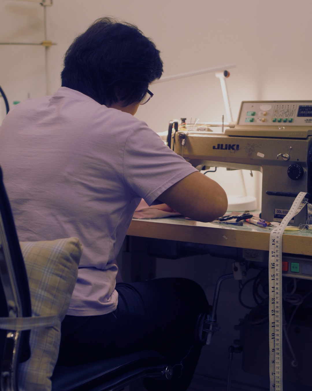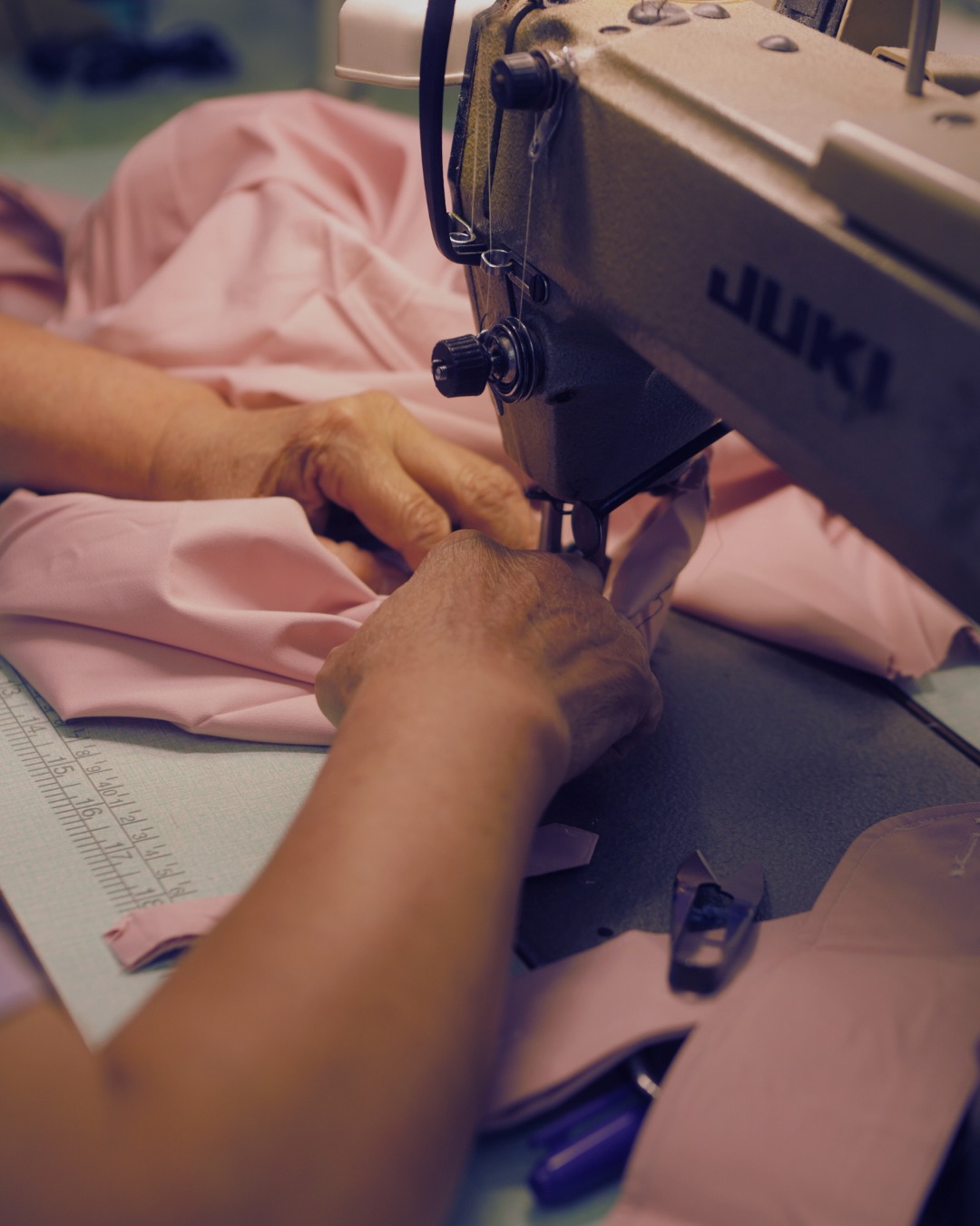 忠孝店還有一位很重要的人物——「鄭小妹」,阿姨從事服裝製作、修改工作逾40年,身為大家的前輩卻完全沒有距離感,她喜歡大家叫她鄭小妹,每天都開開心心地來上班,把製作修改的工藝做到專精,休息時間常常看到她在關注國外的西裝製作影片,我們也常會一起研究,如何調整會讓客人穿得更好看?一次次調整修改方式,做到無痕美觀,她真是活到老學到老的最佳典範!