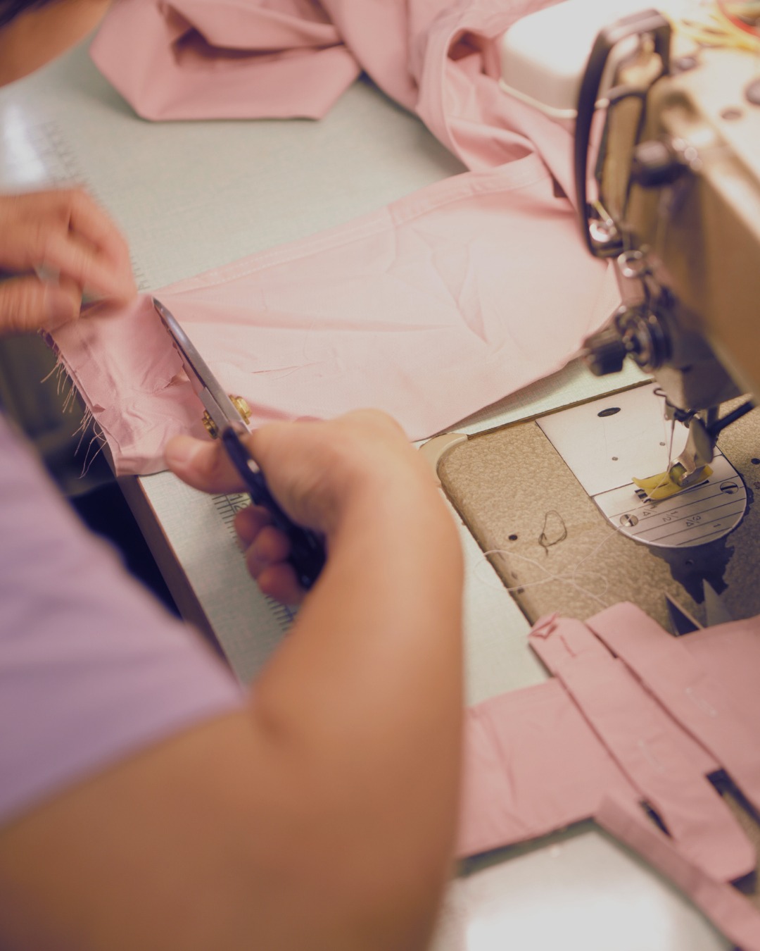 有的客人會開玩笑問:「阿姨在這邊做衣服嗎?」當然不是囉!這邊只能處理後期現場的修改,製作環節還是要在工廠端進行。但因為專業的師傅就在現場,客人穿上衣服時,若有問題要調整,我們可以直接判斷問題、找出解決方法,避免來來回回的返修與溝通,節省大量時間與成本,客人若是特急件,也有機會在當天就能拿到帶走。