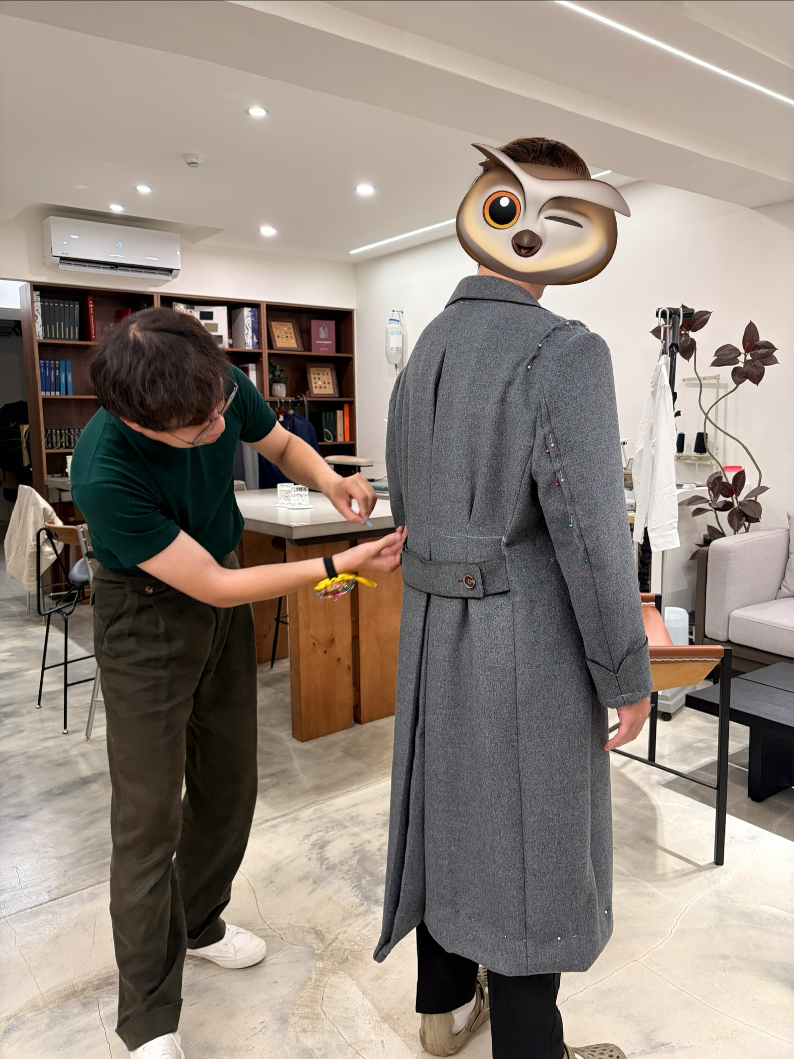 其實,成衣和訂製背後的工序等級很不一樣。因為對品質和細緻度的要求不同,技術也是兩回事。簡單來說,專門處理人造纖維的機器和工藝,是沒辦法處理羊毛布料的,從設備到師傅的關於訂製服務…手感都不在同一個水平線上,當然成本也跟著翻了好幾倍。此外,門市人員所需具備的專業度更高,常態性的內部受訓,不斷檢討改進流程和細節都是日常。